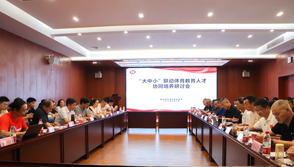 为了进一步推动体育教育人才的培养,提升体育教育质量,9月4日,体育学院举办了“大中小”联动体育教育人才协同培养研讨会。浙江省教育厅教研室教研员余立峰,湖州市各区县教研员、教学名师,我校体育学院党总支书记沈健,体育学院各教研室主任、术课教师和部分学生参加了本次会议,会议由体育学院副院长刘炼主持。