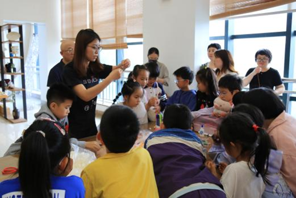 活动尾声,孩子们化身非遗小传人,自信讲解创作理念,并与自己的作品开心合影留念。张新江指着一排排琳琅满目的文创产品感慨:“当孩子们把蚕茧看作朋友而非商品,把工艺制作视为游戏而非任务,文化传承便有了最自然的生命力。”